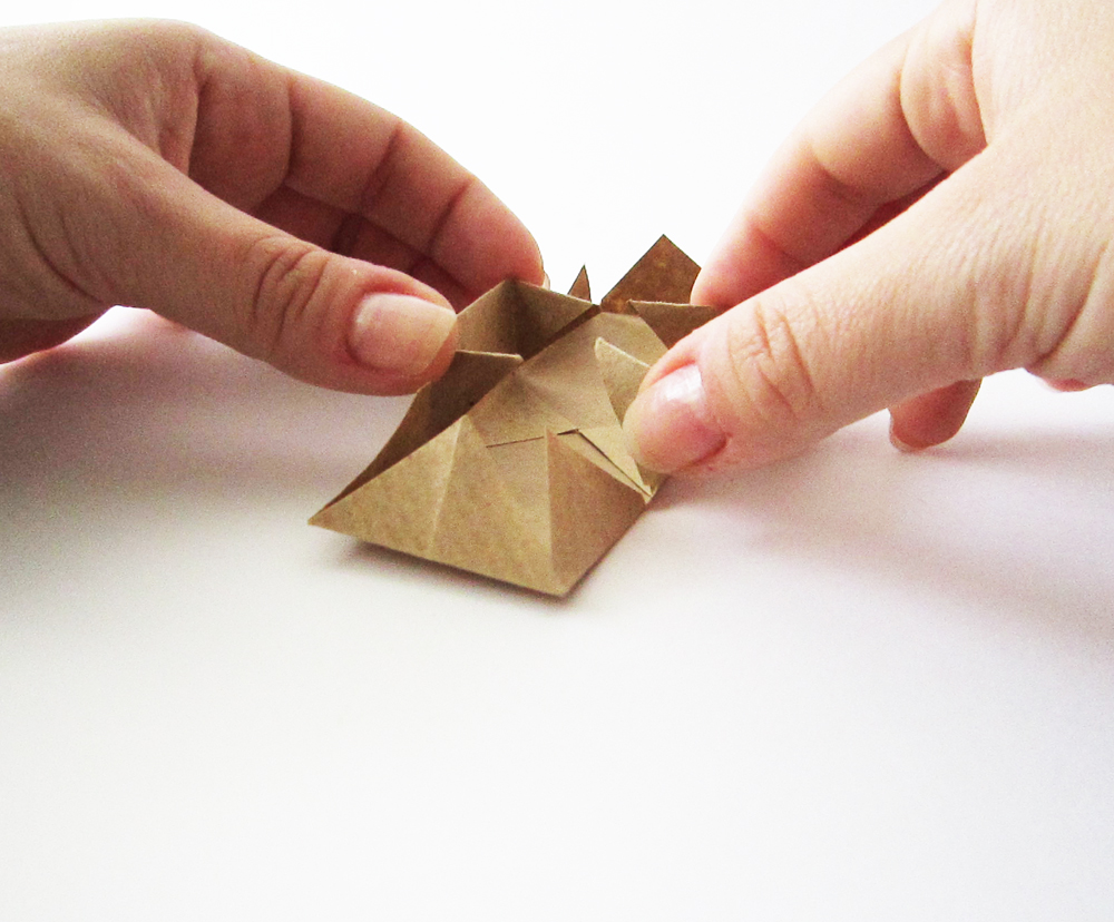 Take the other two sides and bend them towards each other. When they reach each other push them downwards to the center of the box. That’s it! You made it!!! You just made one half of your box!