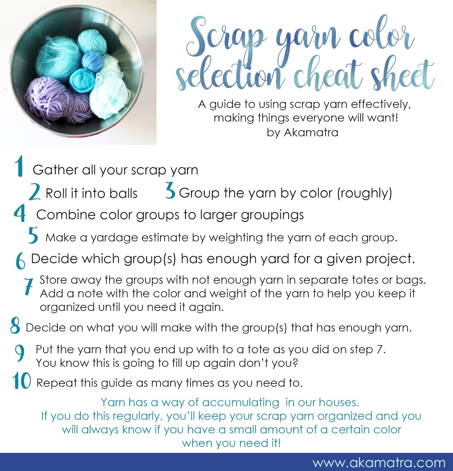 I am planning to repeat these steps regularly as times goes by. Yarn has a way of accumulating in my house. So if I do this regularly, it will hopefully keep my scrap yarn organized and I will always know if I have a small amount of a certain color when I need it!